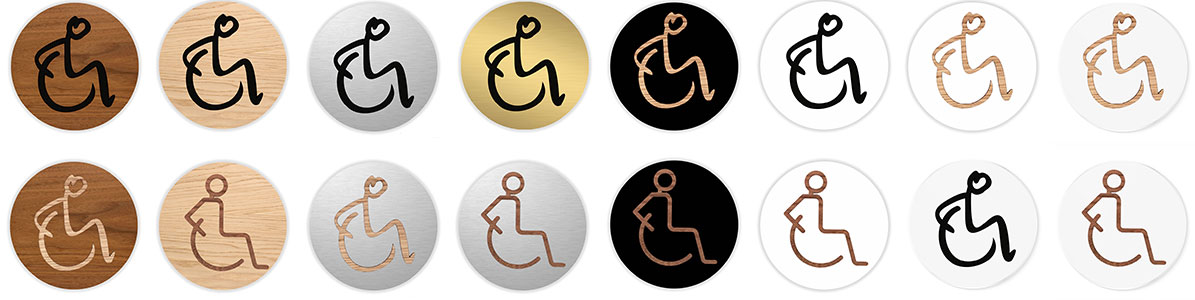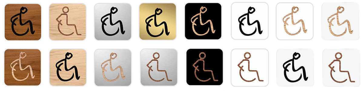 Pictogramme découpé au laser : HOMME OU FEMME DANS UN FAUTEUIL ROULANT TYPO MARQUEUR (PMR)