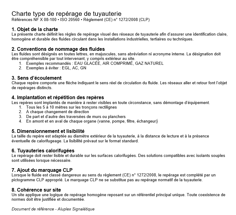 repérage de tuyauterie industrielle normes NF X 08-100 ISO 20560 CLP guide complet